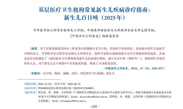 基层医疗卫生机构常见新生儿疾病诊疗指南:新生儿百日咳(2025年)